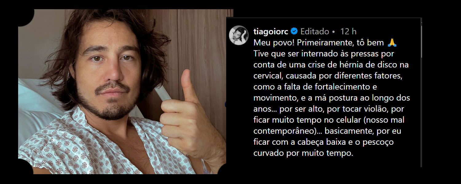 Tiago Iorc ressurge após procedimento na coluna: ‘Alívio imenso’